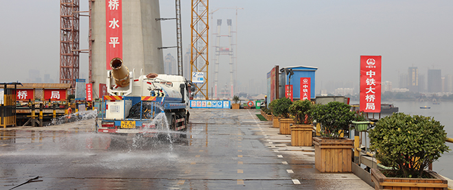 工程代建單位道橋公司有關(guān)負(fù)責(zé)人介紹:“我們這個(gè)工地的特點(diǎn)就是綠色環(huán)保,對(duì)揚(yáng)塵嚴(yán)格控制,通過營造景觀、種植樹木提高工地的‘顏值’,讓工地變成花園。”在武昌岸的施工現(xiàn)場(chǎng),花草樹木都被搬上了臨時(shí)搭建的鋼棧橋。為了提高花草樹木成活率,特別選用了成活率高的黃楊球、鐵樹等,并按照季節(jié)更換花草,還安裝了自動(dòng)灌溉系統(tǒng)。