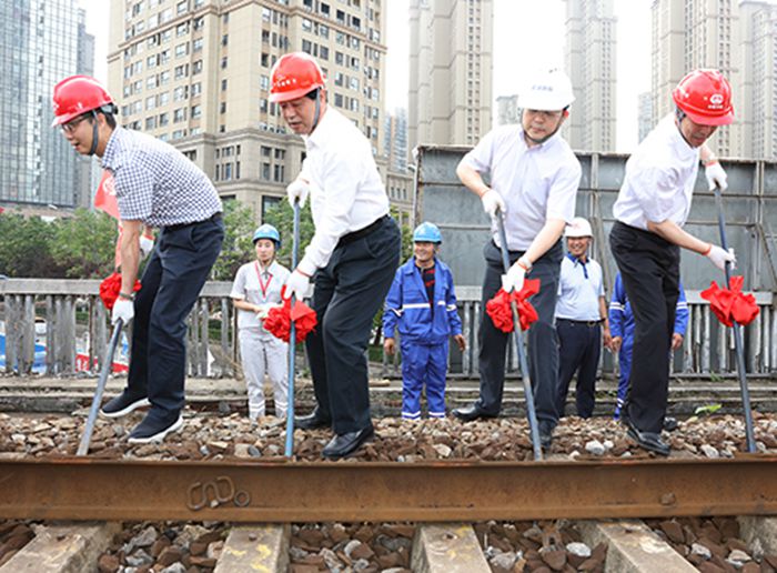 金國發(fā)一行在集團公司副總經(jīng)理、鐵投公司董事長汪國圣等的陪同下,先后前往和平大道三角路鐵路橋、綜合管廊施工現(xiàn)場進行了調(diào)研踏勘,并與武漢局集團公司及相關(guān)建設(shè)單位負責人,共同撬動拆除了武九鐵路北環(huán)線第一根鐵軌,標志著武九鐵路北環(huán)線拆除工作正式啟動。隨后,金國發(fā)一行到鐵投公司召開調(diào)研會議。