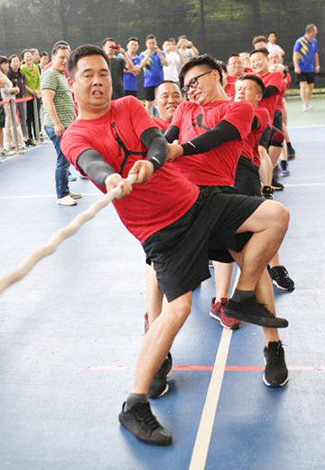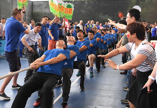 激情五月,活力四射。為營(yíng)造快樂和諧的文化氛圍,引導(dǎo)職工參加健康有益的活動(dòng),增強(qiáng)凝聚力和團(tuán)隊(duì)精神,為企業(yè)的改革發(fā)展集聚智慧、貢獻(xiàn)力量。5月18日下午,集團(tuán)公司舉辦了職工拔河比賽,公司領(lǐng)導(dǎo)金國(guó)發(fā),吳文、榮鞏、鄧耀光等參加活動(dòng)并為優(yōu)勝單位頒獎(jiǎng)。
