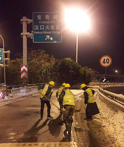 12月30日上午10時(shí),集團(tuán)公司根據(jù)雨雪形勢(shì)啟動(dòng)融雪防凍Ⅲ級(jí)應(yīng)急響應(yīng),切實(shí)保障各生產(chǎn)、建設(shè)、經(jīng)營場(chǎng)所的安全運(yùn)行。集團(tuán)公司全體領(lǐng)導(dǎo)班子成員帶領(lǐng)各部門,分別深入到跨江橋梁、三環(huán)線、制水廠、長江隧道、燃?xì)鈭?chǎng)站、直管公房、公共停車場(chǎng)等重點(diǎn)部位,現(xiàn)場(chǎng)指導(dǎo)調(diào)度掃雪除冰工作。