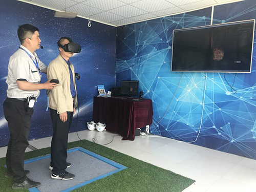在他們的“新法寶”中,體驗(yàn)以建筑施工場(chǎng)景為背景,采用全沉浸、人機(jī)交互的方式高度還原現(xiàn)場(chǎng),體驗(yàn)者佩戴VR眼鏡和外部環(huán)境完全隔絕,進(jìn)入到虛擬環(huán)境中,通過(guò)操作手柄控制。同樣是安全體驗(yàn),3D漫游的效果比普通的VR體驗(yàn)更為顯著。新的體驗(yàn)通過(guò)視覺(jué)、聽(tīng)覺(jué)、觸覺(jué)等多種感官系統(tǒng),能完成在最貼近工程建設(shè)環(huán)境中的傷害體驗(yàn),使體驗(yàn)者對(duì)事故后果產(chǎn)生“敬畏之心”,深切認(rèn)識(shí)到各類(lèi)傷害,起到警示、震撼教育的目的,從而提高體驗(yàn)者的安全意識(shí)。