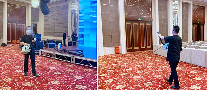 一進(jìn)酒店,門口有一臺(tái)紅外線體溫測(cè)量儀,人員進(jìn)入必須測(cè)量、掃碼,綠碼方可進(jìn)入。在舉辦活動(dòng)的國際會(huì)議中心3樓和5樓會(huì)場(chǎng),工作人員正在進(jìn)行噴霧消殺?!皶?huì)議前兩天起,每天定時(shí)對(duì)會(huì)場(chǎng)全面消毒?!?武漢洲際酒店副總經(jīng)理黃娟介紹,1.8米長的會(huì)議桌,以前坐3人,現(xiàn)在只安排坐2人,既方便與會(huì)者之間溝通交流,又能保障座位間的安全距離。