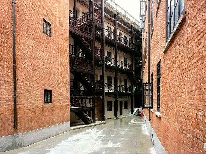 巴公房子極具特色的俄式紅磚清水墻因年久失修早已破舊不堪,為遵循最小干預(yù)原則,還原清水墻本色,天時(shí)公司修繕人員首先將被后人隨意粉刷過的墻面手工剝離,清縫再進(jìn)行拼色做舊。為盡可能的復(fù)原房屋外立面紅磚的原貌,天時(shí)公司在項(xiàng)目施工前期采取現(xiàn)場(chǎng)取樣送檢的方式,在具有代表性的點(diǎn)位選取破損的紅磚,由同濟(jì)大學(xué)材料力學(xué)實(shí)驗(yàn)室對(duì)其配料、強(qiáng)度、色澤、成分等進(jìn)行檢測(cè),并根據(jù)檢測(cè)結(jié)果進(jìn)行磚粉配比。配比完成后,再及時(shí)進(jìn)行打樣,經(jīng)多方認(rèn)可后開始對(duì)清水墻展開施工,80余位工匠花費(fèi)近1年時(shí)間,手工為8000?的房屋立面更換了共計(jì)56萬塊紅磚。