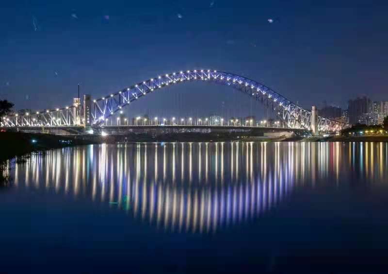漢江灣橋工程施工組織難度大、施工技術(shù)含量高,橋梁建設(shè)采用了多項(xiàng)新材料、新設(shè)備、新技術(shù):首次應(yīng)用國(guó)家“十三五”重點(diǎn)科研項(xiàng)目Q690qE橋梁鋼板作為主橋主桁的鋼材;大橋主拱單根拱肋桁架桿件吊重達(dá)100噸,屬國(guó)內(nèi)同類橋梁結(jié)構(gòu)桿件最大吊重;為完成鋼桁拱架設(shè),首次采用國(guó)內(nèi)新研制爬坡角度大重載100噸拱上架梁吊機(jī);橋面首次采用正交異性鋼橋面板U肋全熔透焊接技術(shù),提高了鋼橋面的使用周期,解決了U肋焊接質(zhì)量通病。